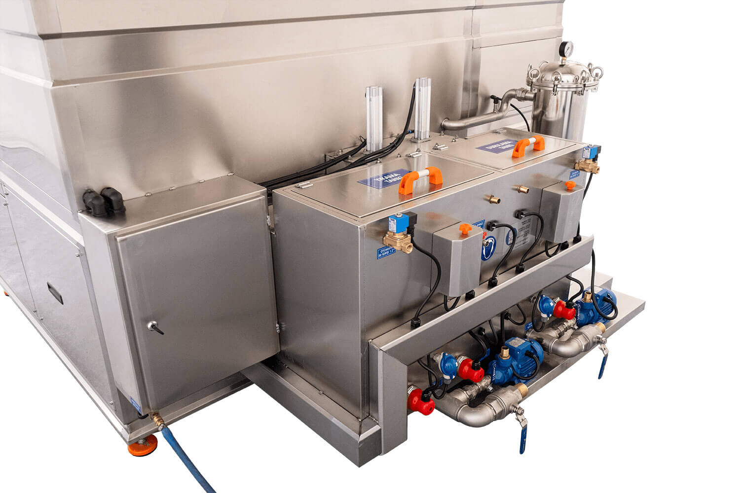 With its compact design, ALL in ONE eliminates the need for the space of two or three separate machines, providing both space efficiency and operational productivity for businesses. Depending on the application, the system can be enhanced with additional units such as drying, precision filtration, automatic platform, and automatic loading systems to further improve cleaning quality.