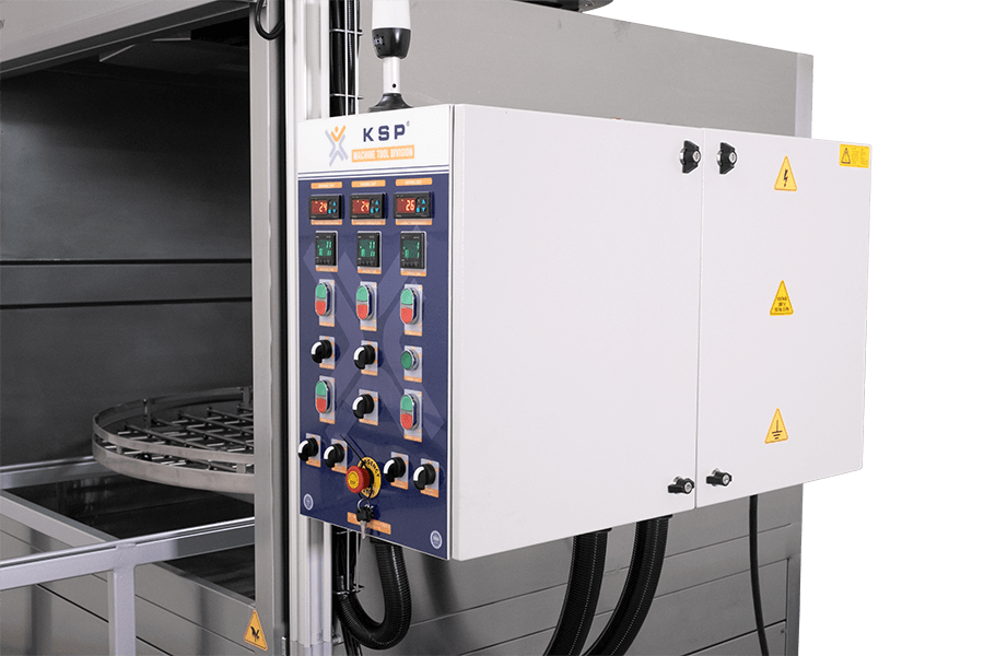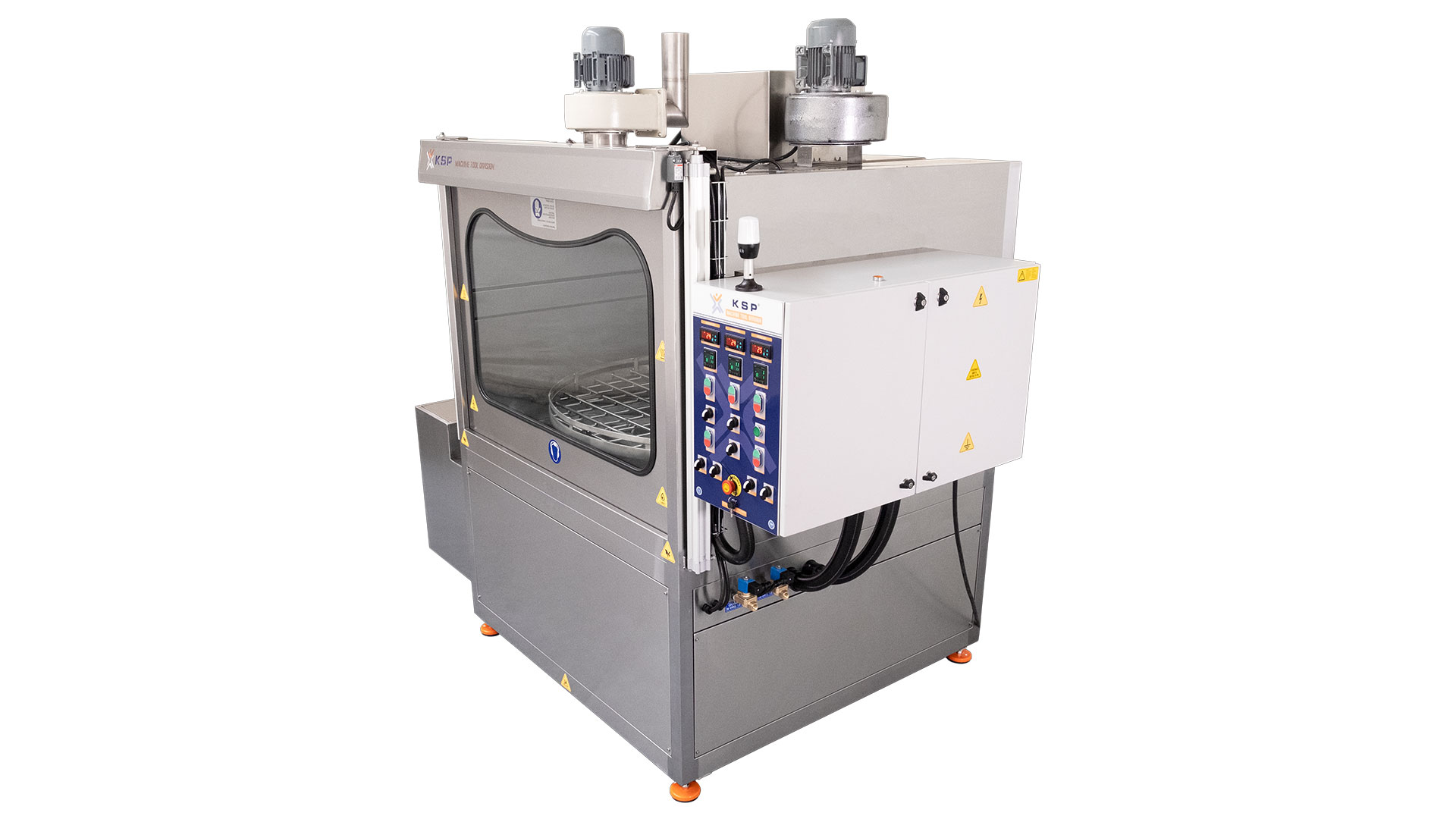 Developed by KSP Machine, the Purge XLarge Series Rotary Basket Washing System delivers high-quality cleaning by washing parts in a rotating basket with high-pressure detergent water inside a closed cabin. Its recirculation system and advanced filtration technology ensure efficient use of water, detergent, and energy, providing a reliable solution for cleaning dirt, oil, and chips before ultrasonic washing, painting, or surface treatment.