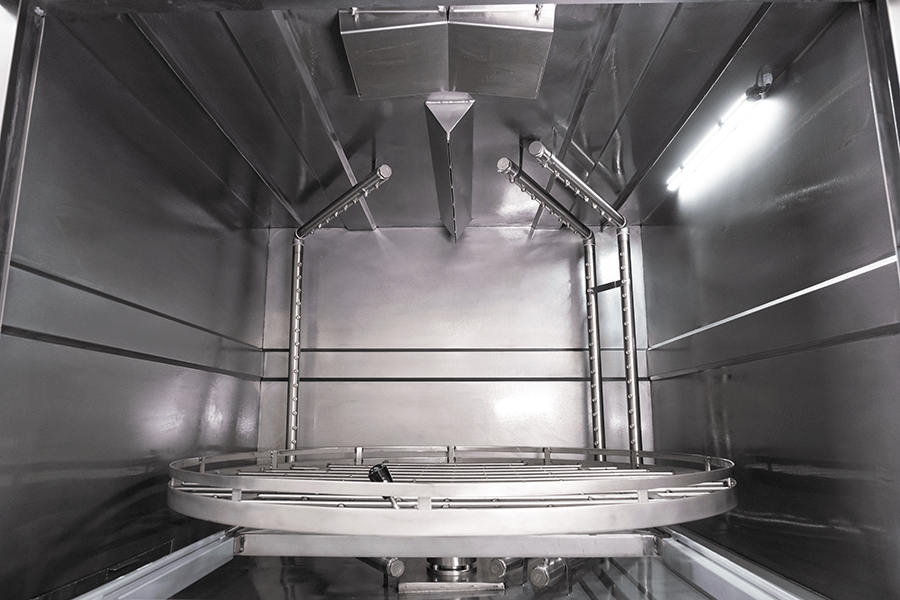 The products placed on the rotary basket are cleaned with high-pressure, detergent-based water inside a closed cabin. Depending on the requirements, additional processes such as washing, rinsing, drying units and precision filtration can be integrated to enhance cleaning quality.