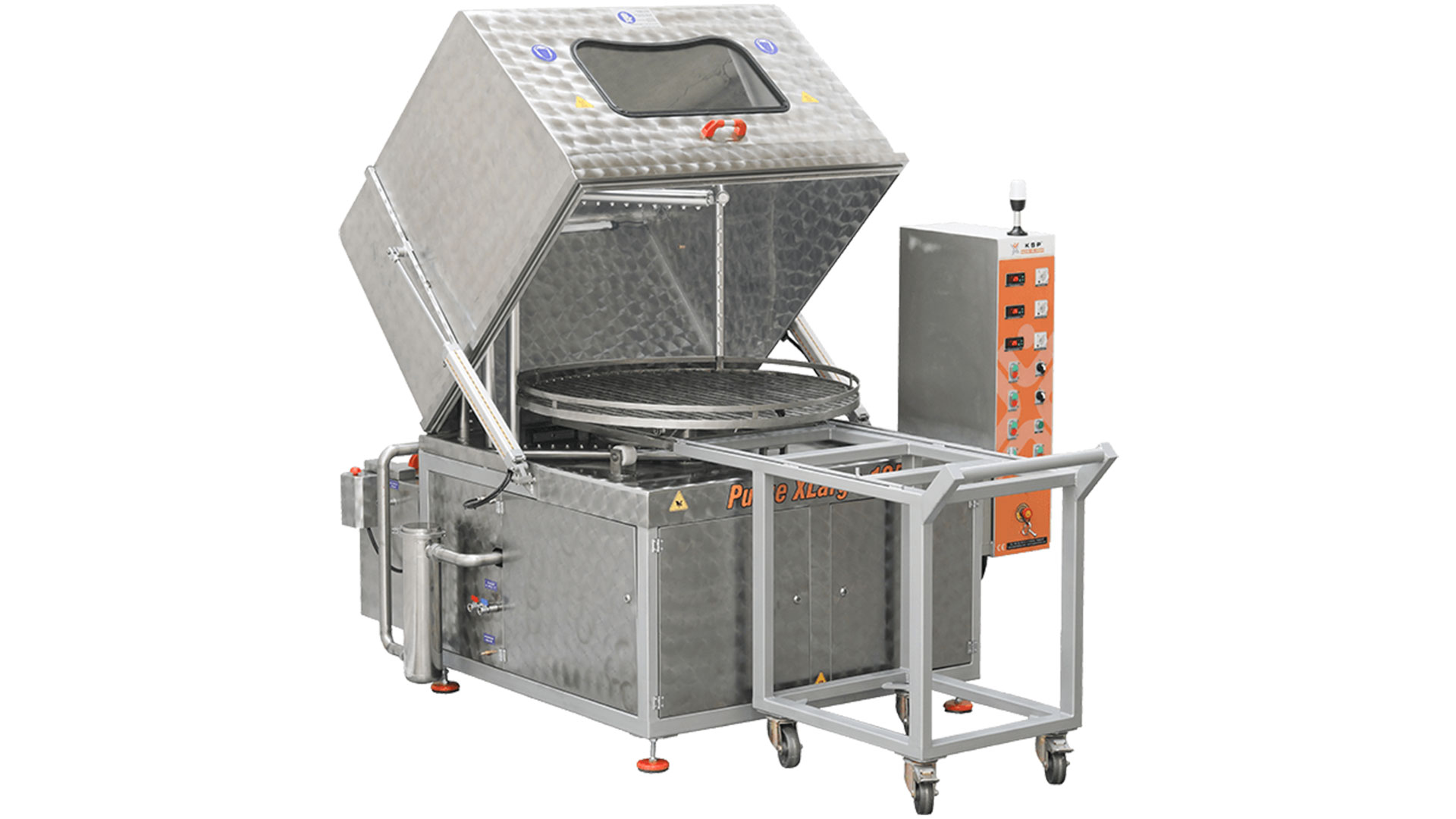 During the process, hot water is sprayed onto the parts through nozzles mounted on the integrated pipes of the machine. The Purge XLarge Series is specially designed to save labor, water, detergent, electricity, and time.