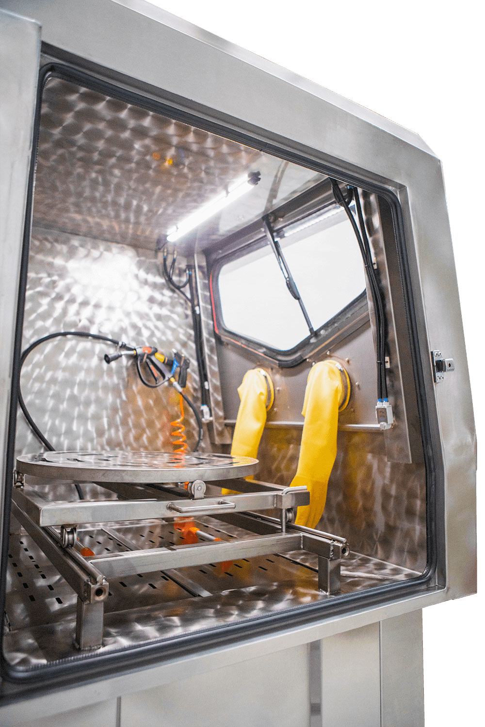 The washing cabin features interior lighting and a wiper system that keep the window clear of steam and water, allowing the operator to maintain a clear view during the process. The machine’s four-stage filtration system extends the lifespan of water and detergent, while its washable and reusable filters help reduce operational costs.