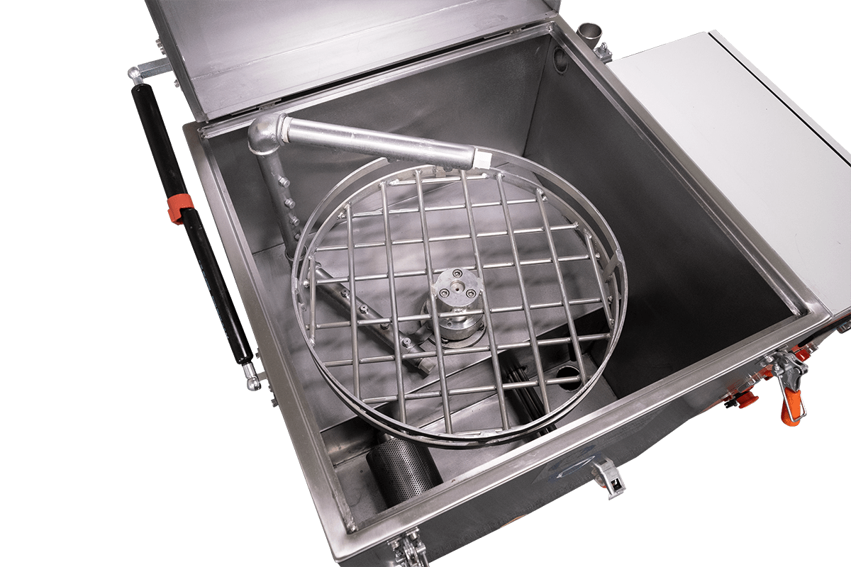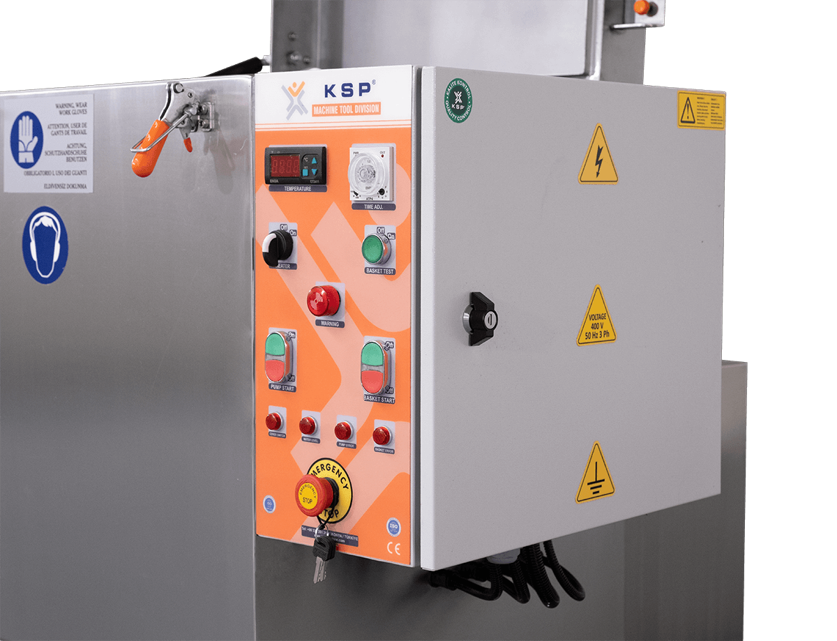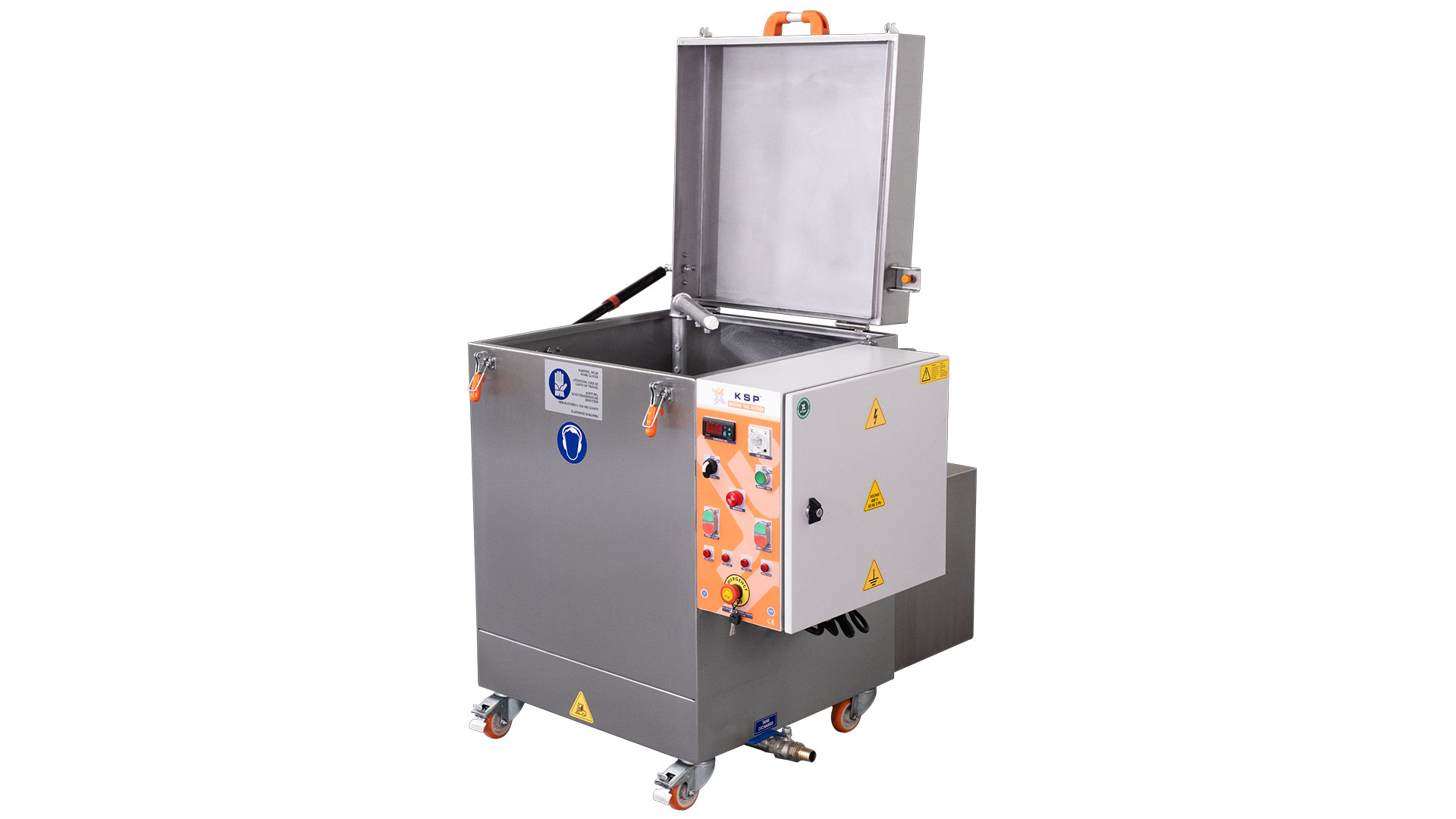 Developed by KSP Machine, the Rotary Basket Washing System is designed for high-quality, fast, and cost-efficient cleaning of small and medium-sized parts. The parts are placed on a rotating basket and washed inside a closed cabin with high-pressure hot detergent water. During the washing process, integrated spray nozzles direct the water onto the parts’ surfaces, ensuring effective cleaning across all areas.
